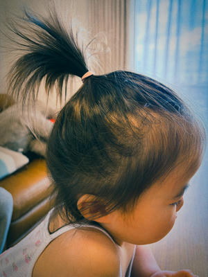 おかん(私)が娘の髪をポニーテールに結うのを見て、おとんもやってみようと思ったのだろう、それはとても嬉しい。