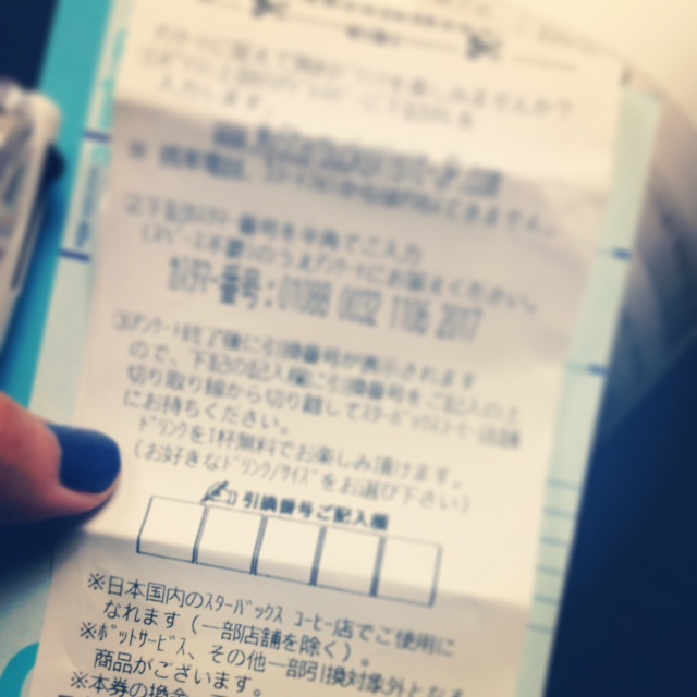 写真は、スタバの当たりレシート。