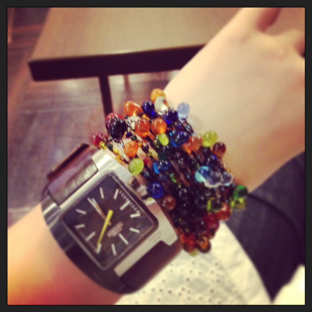 あ、ほんとはネックレスね、今日はブレスレットにしてみたのやけど、お団子ヘアの時は、髪飾りにも出来る、というか、してしまう。