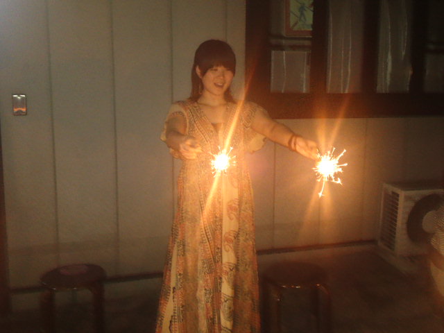写真は、実家で、両親と妹夫婦とやった花火。