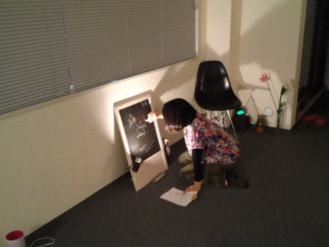 ④出来上がりを確認中の私を撮ってくれようとしたのやけど、落書き大会が始まる。。
