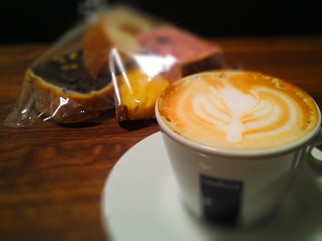 そして、もっちんさんが淹れてくれたカフェラテ&横田持参のカンパーニュパン。