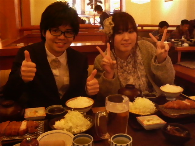 打ち上げのみそかつ屋さんにて。
