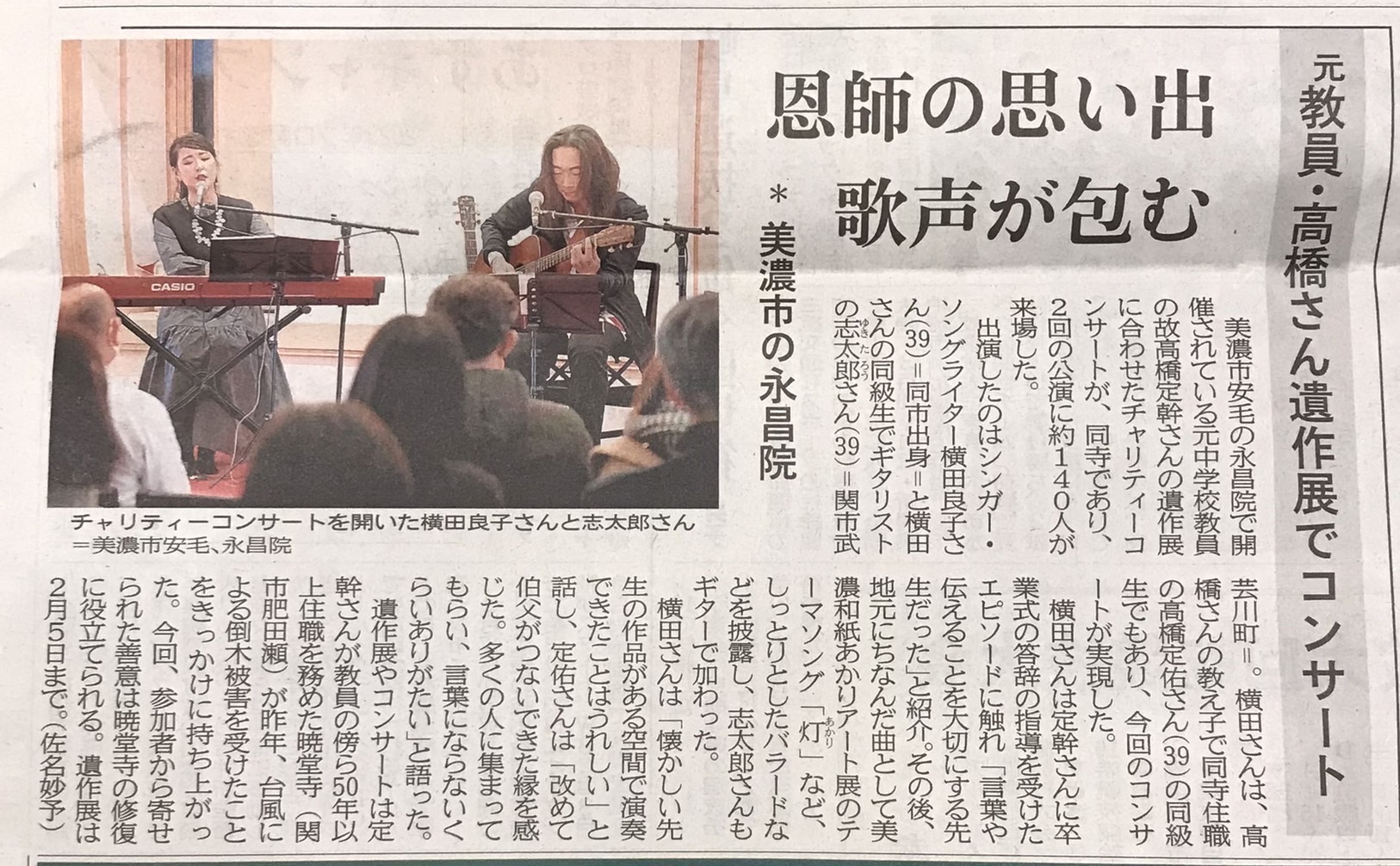 ▼永昌院での暁堂寺修繕支援「横田良子チャリティーコンサート」昼の部 ゲスト/ 志太郎-yukitaro-