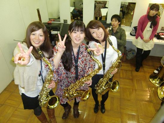 左から、ユーホのあいぼん、クラリネットのあいちゃん、サックスの私、パーカッションさなえ。