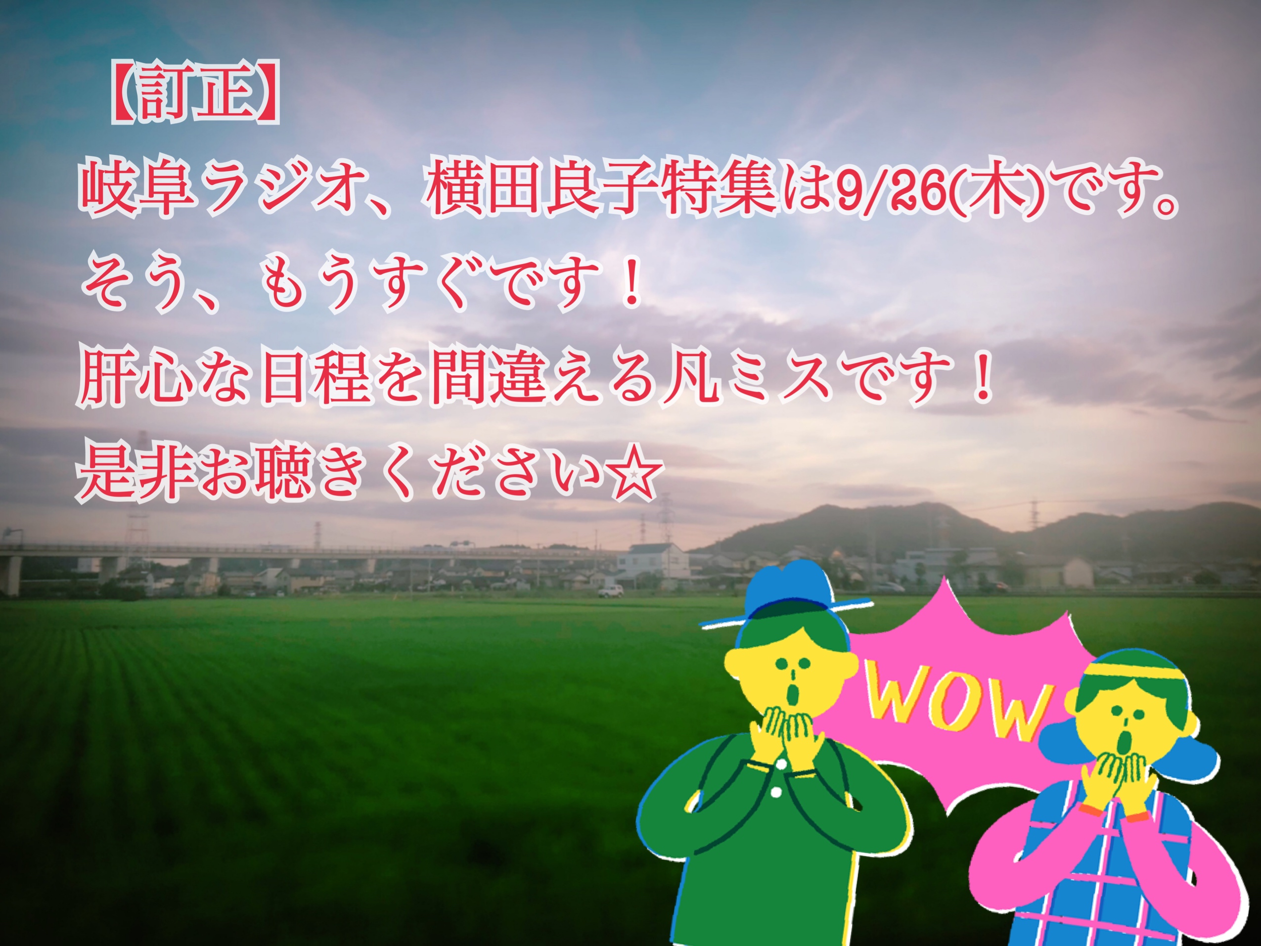 岐阜ラジオ、日程訂正してます。