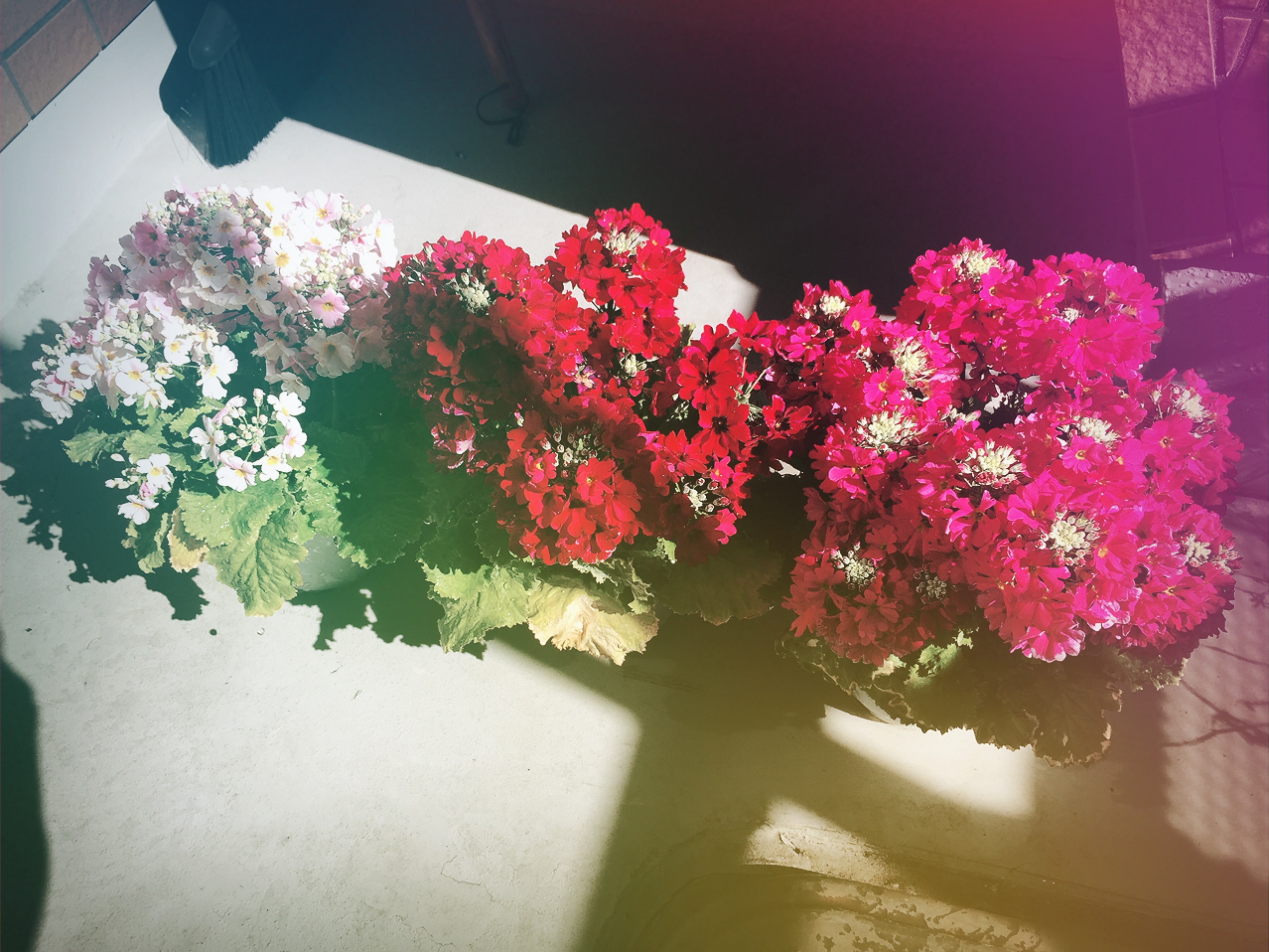 おうちに遊びに来てくれた家族が、お花屋さんで綺麗だったからと、カラフルを分けてくれました。