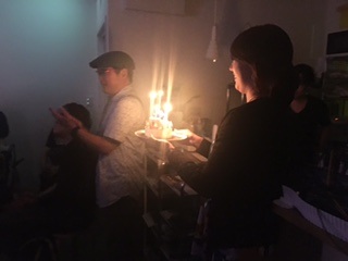 可愛いケーキに、皆さんからのハッピーバースデーソング。