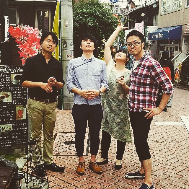 ☆休憩中、メンバー4人で。横田と谷氏はなんで上見とんのやろね。いつも素敵な音をありがとう。