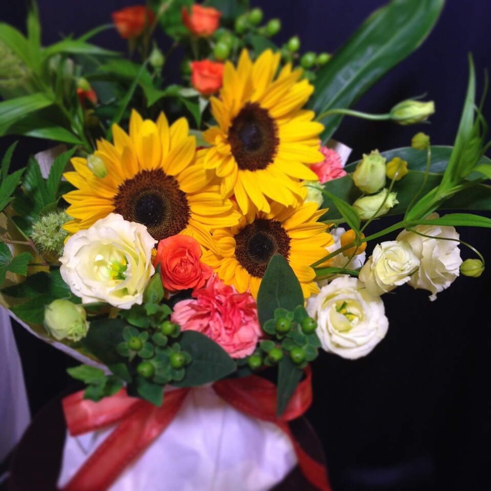 ☆いつも綺麗なお花をいただきます。ステージにひまわり。