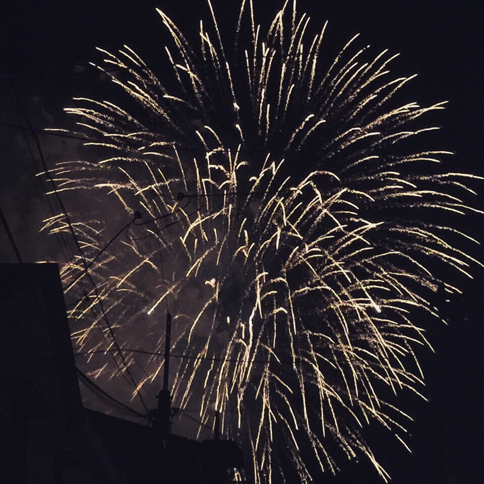 ☆横浜の花火。渋滞で会場まで行けず、住宅街に迷いこむ。綺麗に見える場所発見。来年もあのローソンを曲がろう。