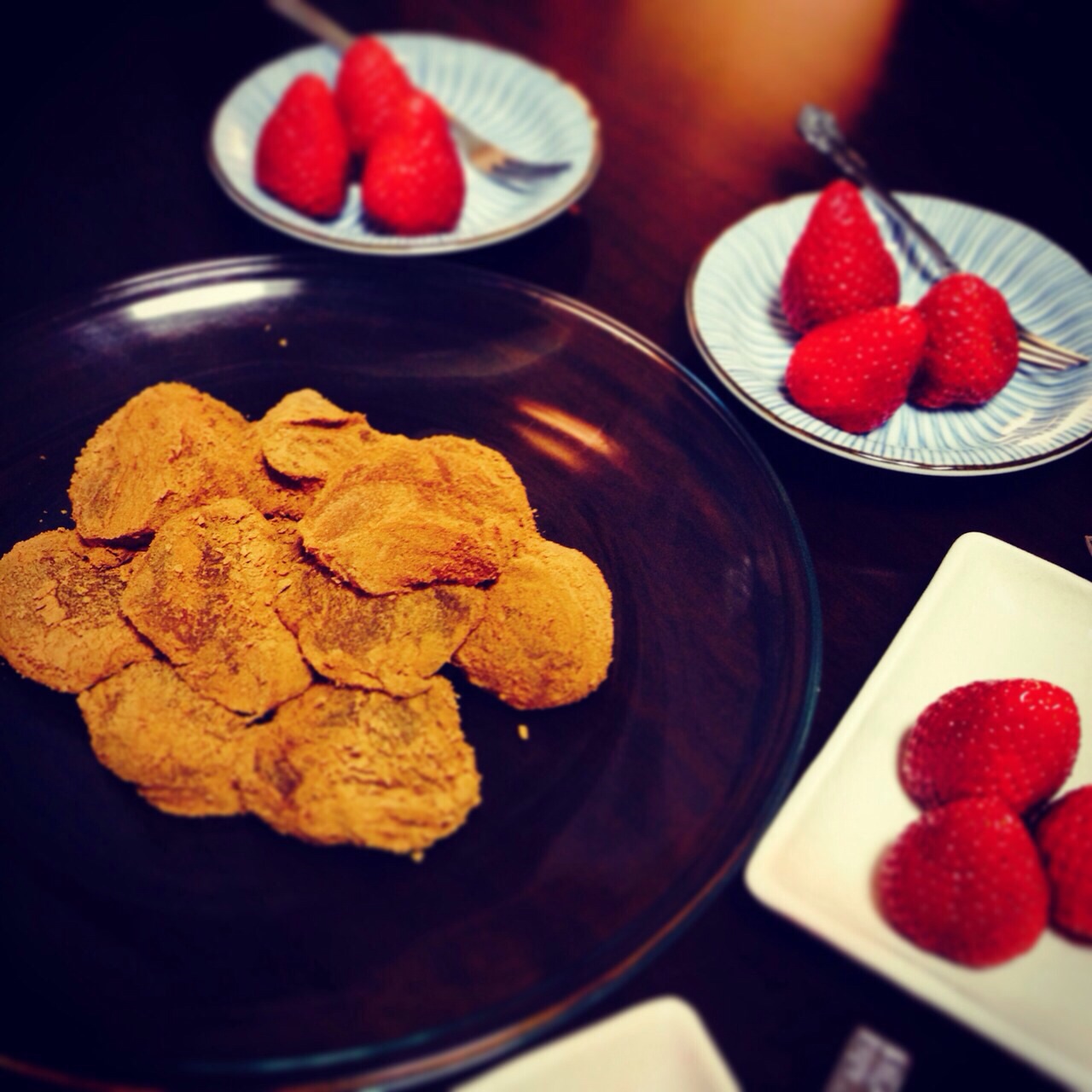 大好きなかねすえのわらび餅に、頂き物のイチゴ。